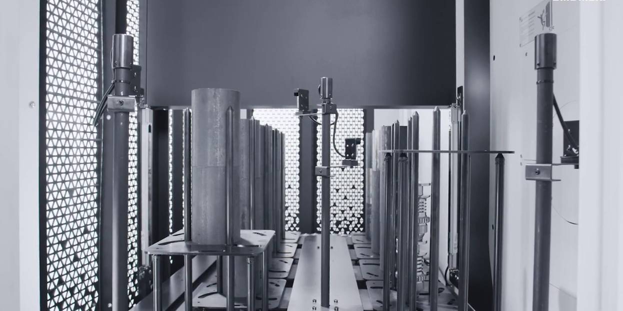 - Niewielka powierzchnia posadowienia (21,9 m²) z podajnikiem prętów i jednostką filtrującą